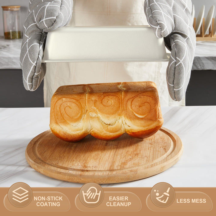 - 🎨【 A Healthier Baking Choice & Easy to Clean & Scratch Resistant 】 the two-layer coating is chemical-free. It is thus safe to use. In addition, it has a smooth, non-stick surface thanks to a 34% silicon content that makes it a breeze to clean while protecting against scratching, staining, and corrosion.