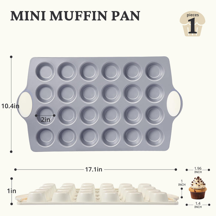 HONGBAKE Ceramic Mini Muffin Pan, 24-Cup Nonstick Aluminized Steel Cupcake Pans, Healthy Non-Toxic Ceramic Coating Mini Muffin Tin, 1Pack Cup Cake Pans for Baking Cream
