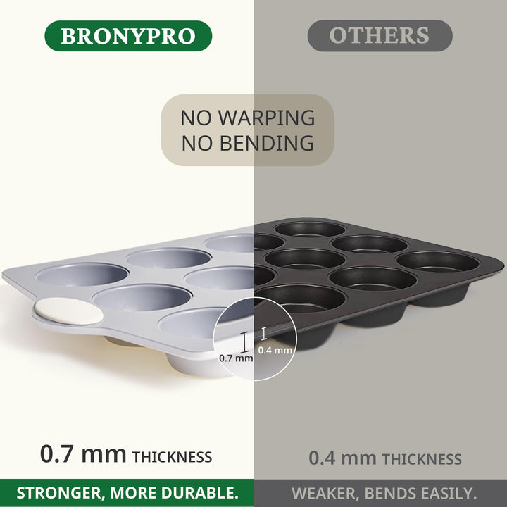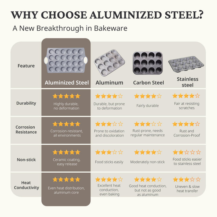 🥳【Heavy-Duty Aluminized Steel】Our ceramic mini cupcake pans are crafted from high-quality aluminized steel, a new and advanced material offering 50% better corrosion resistance and durability compared to traditional pans. This innovative material provides even heat distribution, significantly reducing baking time and withstanding temperatures up to 500°F. Ideal for ovens, dishwashers, refrigerators, this muffin pan is designed to enhance convenience in every kitchen.