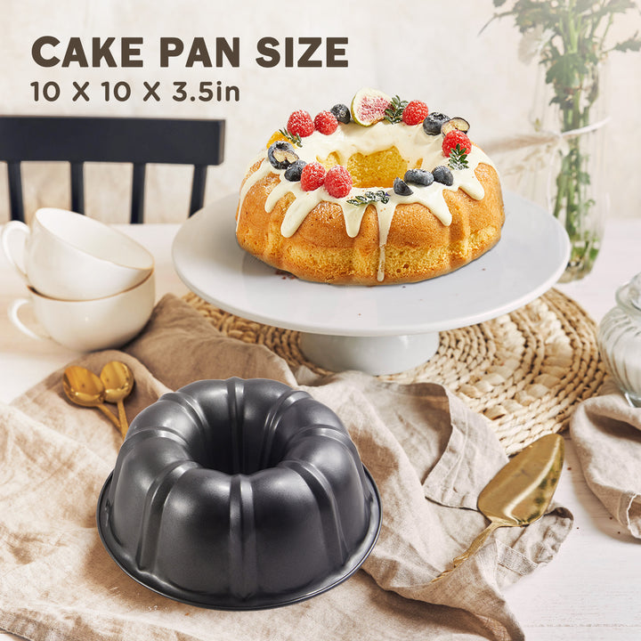 - PERFECT STANDARD SIZE - This pound cake pan is 10 inch bottom & 3 Inch high. KITESSENSU cake pan is a classic shape that's perfect for special occasions or everyday. This pan's versatile size, shape and crisp details work well with present day 10-12-cup mixes and recipes because of the Narrow base, straight sides and extra large center tube. It's a staple for any kitchen. This professional-weight, formed bakeware is a wonderful addition to any kitchen.
