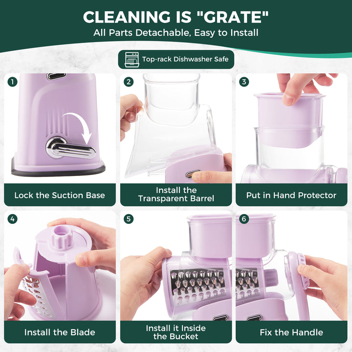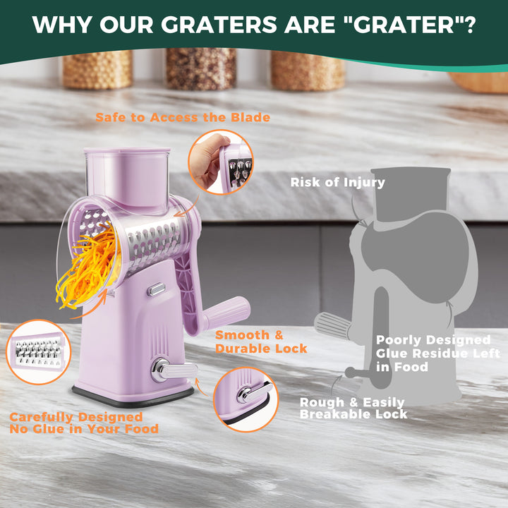 KITEXPERT Rotary Cheese Grater with Handle, 5 Well-Designed Blades, Strong Suction Cup Base, Kitchen Utensils Vegetable Slicer Dicer Fruit Vegetable Slicer Gadgets Kitchen,Green